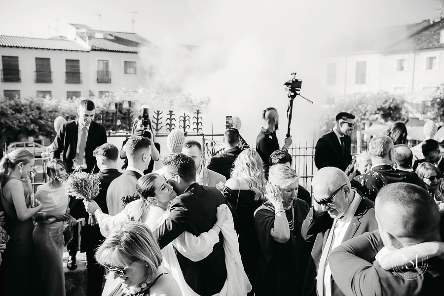 La ceremonia tuvo lugar en la preciosa iglesia de Mondéjar, un escenario lleno de historia y emoción donde Berta y Jorge se dieron el “sí, quiero” entre miradas cómplices y alguna que otra lágrima de felicidad. Después llegó el convite en la Hacienda de los Santos de la Humosa, un lugar perfecto para disfrutar del atardecer, la comida deliciosa y, cómo no, una gran fiesta.